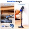 - 【Flexible LED Motorized Floor Brush Head】The rechargeable stick vacuum cleaner features a flexible floor brush that rotates 180° side to side and 90° up and down, making it easy to reach under and around furniture—no need to move heavy pieces. The built-in LED headlight gently illuminates dark corners and hidden spaces, helping you effortlessly capture dust and crumbs where they hide. Clean with confidence and care, even in the trickiest spots.